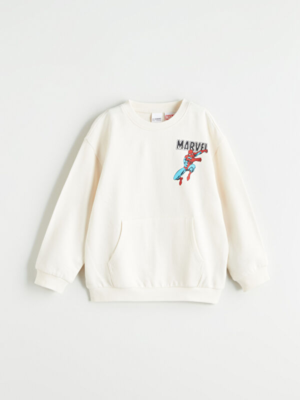 Дөңгелек жағалы басып шығарылған ұзын жеңді ұл балаға арналған свитер