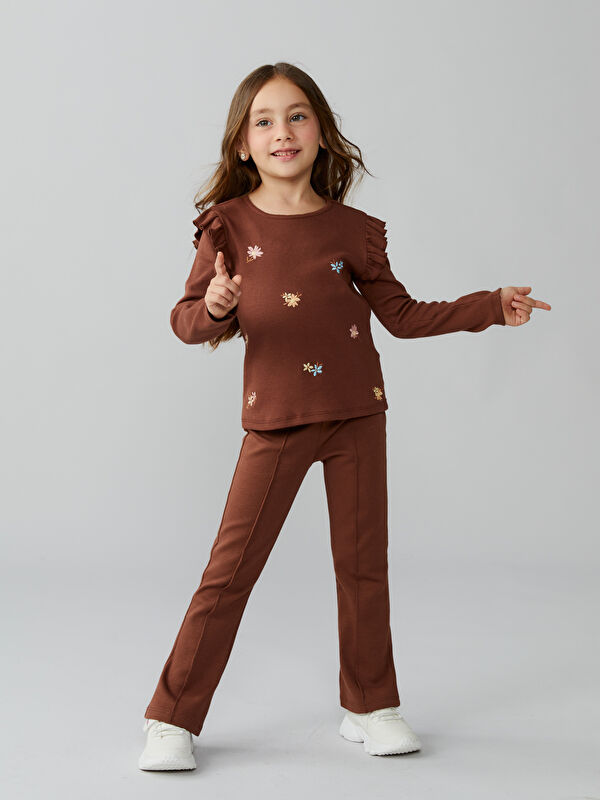 қыздарға арналған гүлді өрнекті кең балақ леггинстер 2 данадан тұратын