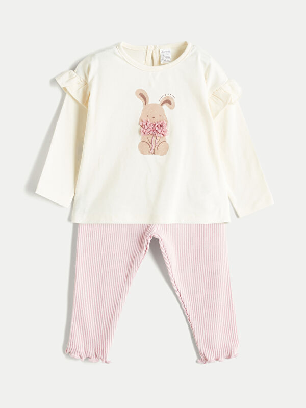 гүлді өрнекті сәби қыздарға арналған футболка мен шалбар 2 данадан тұратын жинақ