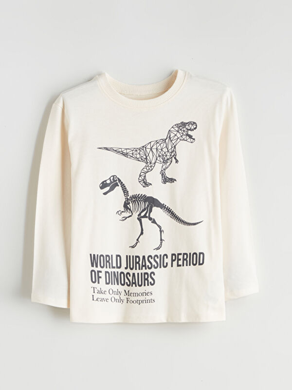 Дөңгелек жағалы басып шығарылған ұзын жеңді ұл балаға арналған футболка