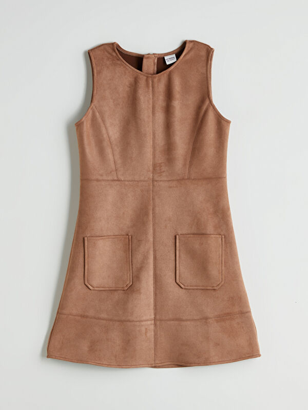 Қыздарға арналған дөңгелек жағалы жасанды былғары көйлек