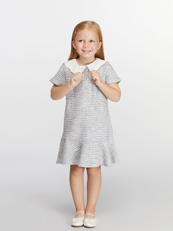 Қыздарға арналған дөңгелек жағалы Эльза принті бар көйлек