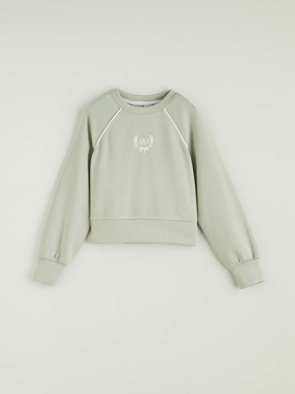 Қыздарға арналған дөңгелек жағалы тігісті принтті қалың свитшот