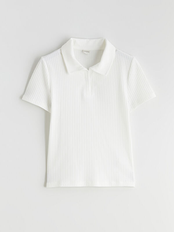 Қыздарға арналған дөңгелек жағалы жылтыр футболка