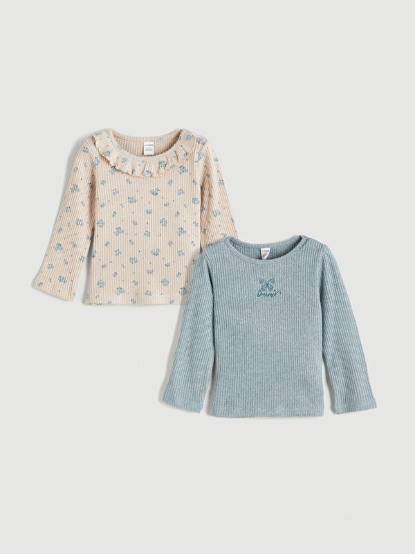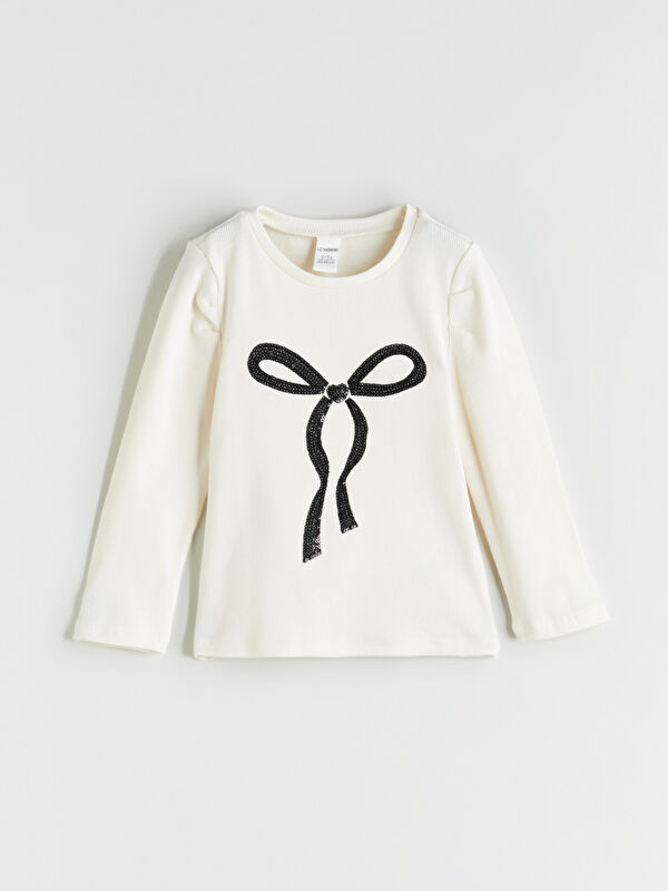 Қыздарға арналған принтті дөңгелек жағалы футболка