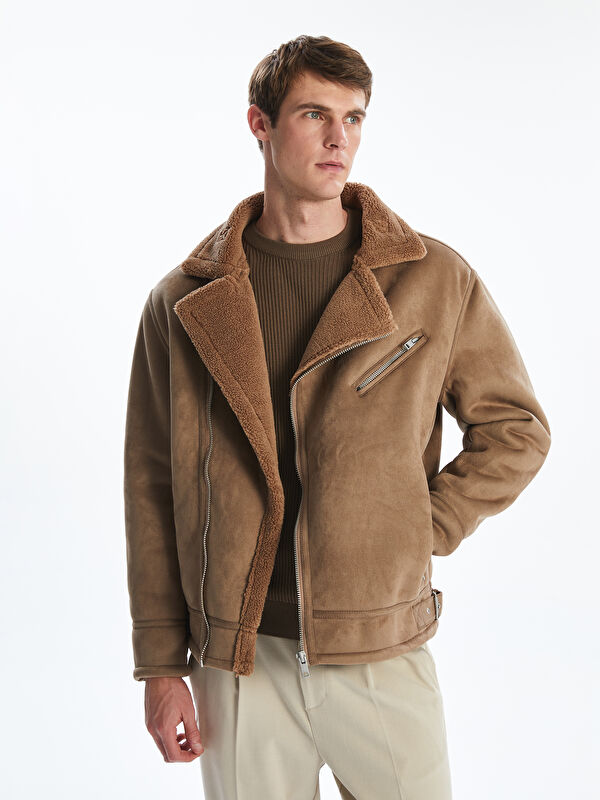 Slim Fit байкер жағасы Ерлерге арналған былғары көріністі куртка