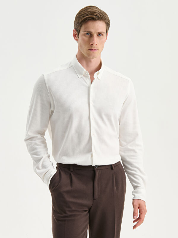 ерлерге арналған өте тар пішім ұзын жең саржа жейде