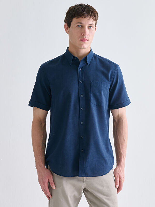 Ерлерге арналған еркін пішім жағалы қысқа жең жейде