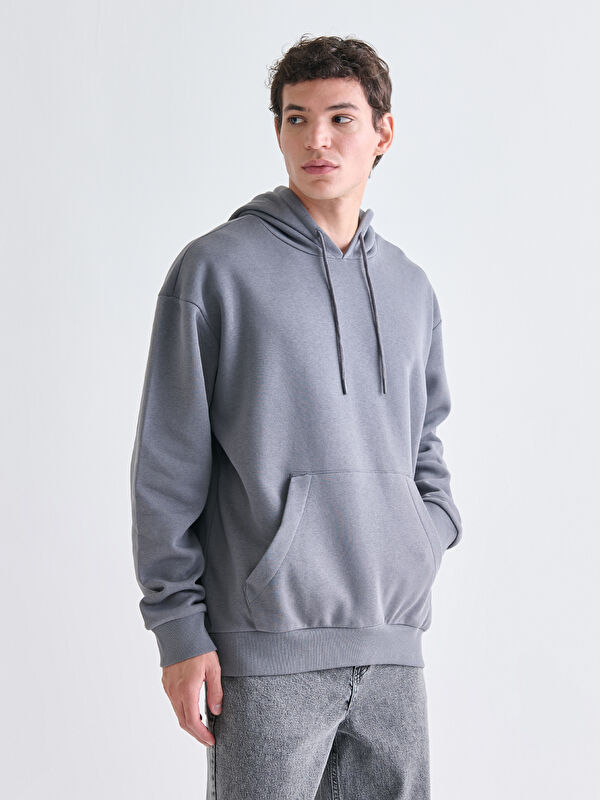 Ерлерге арналған капюшоны бар ұзын жеңді принті бар толстовка