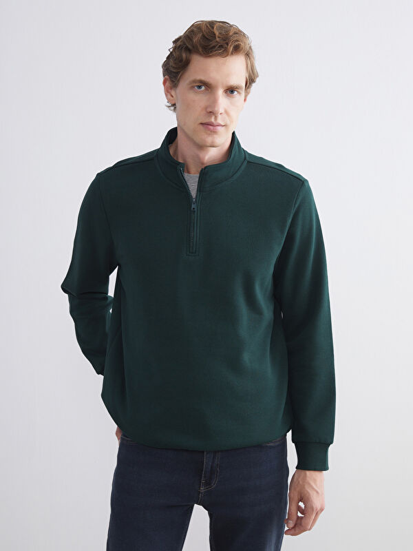 Ерлерге арналған жолақты ұзын жең поло жағалы свитшот