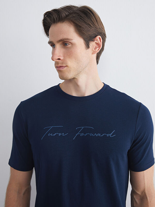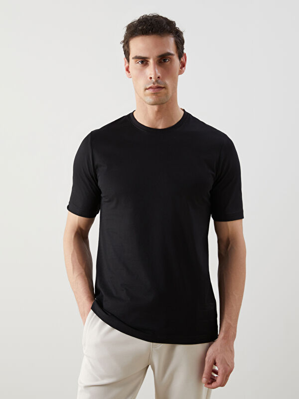 Ерлерге арналған дөңгелек жағалы жолақты футболка