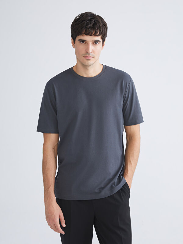 Ерлерге арналған дөңгелек жағалы қысқа жең футболка