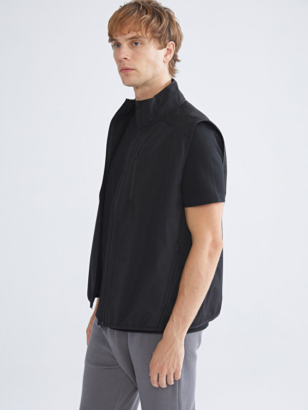ерлерге арналған тар пішім биік жағалы пуховик жилет
