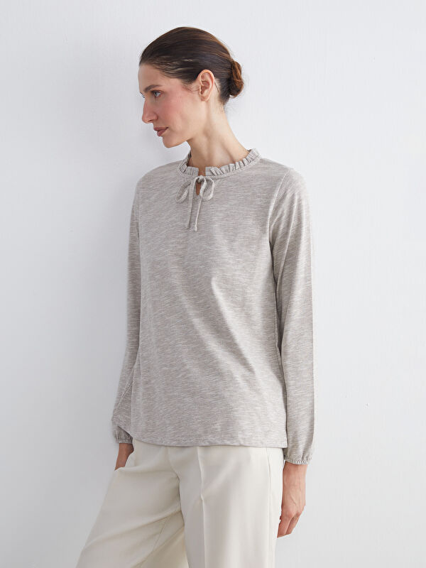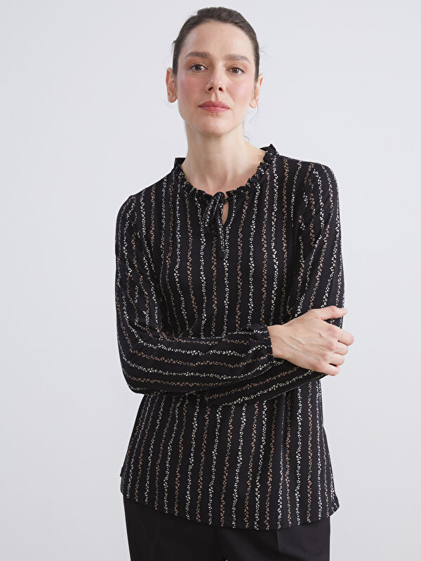 Дөңгелек жағалы өрнекті әйелдер блузкасы