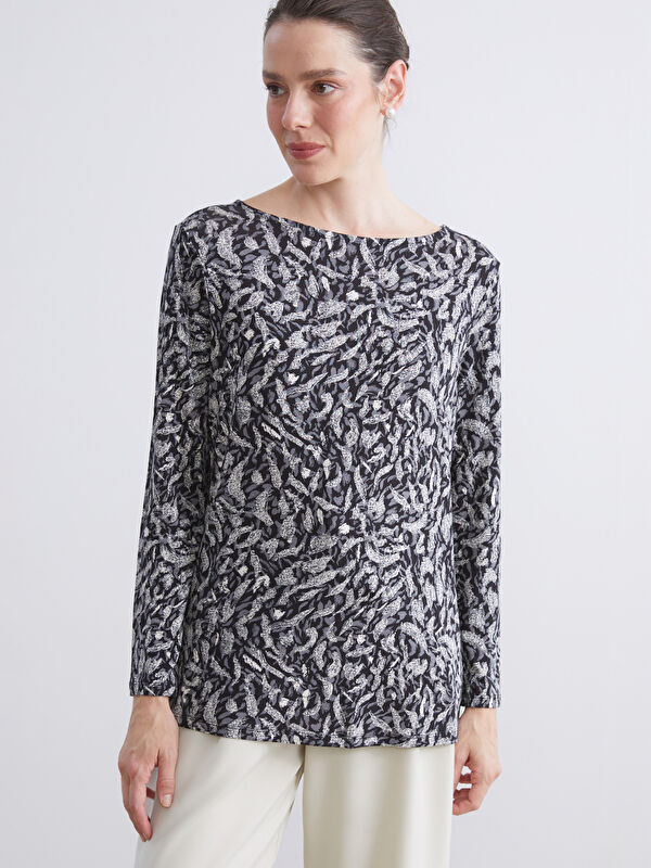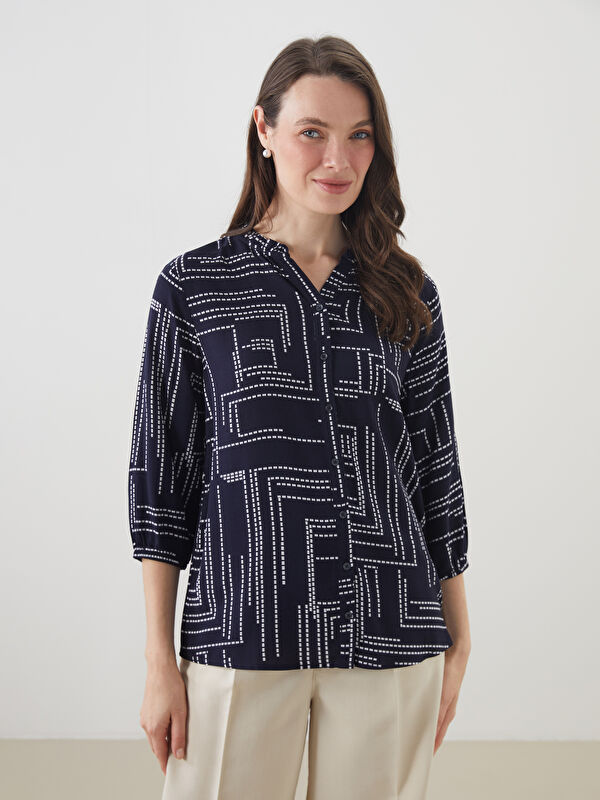 Әйелдерге арналған байламалы жағалы өрнекті блузка