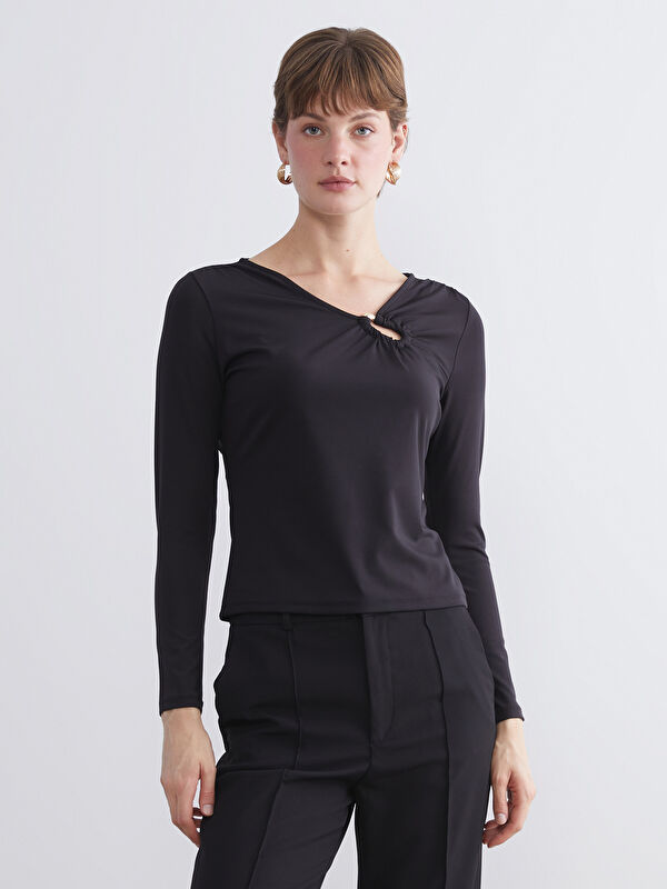 Әйелдерге арналған дөңгелек жағалы кружевасы бар блузка