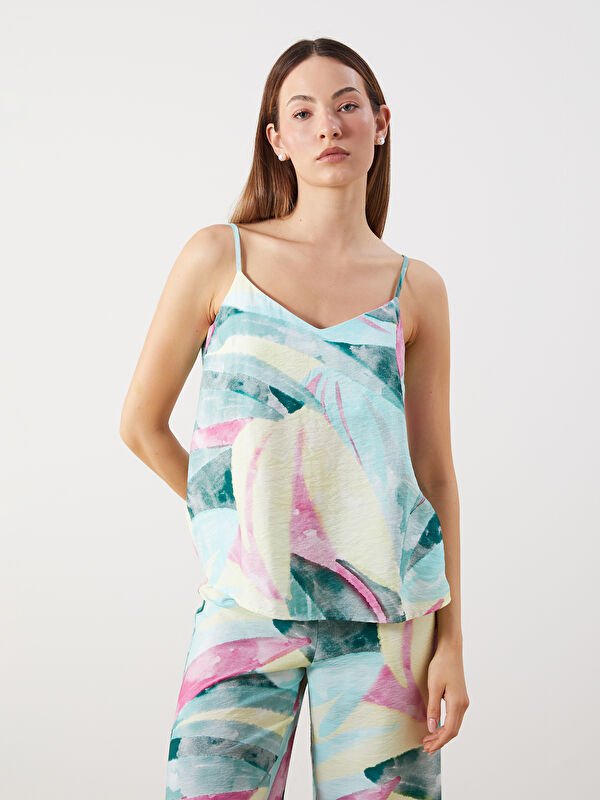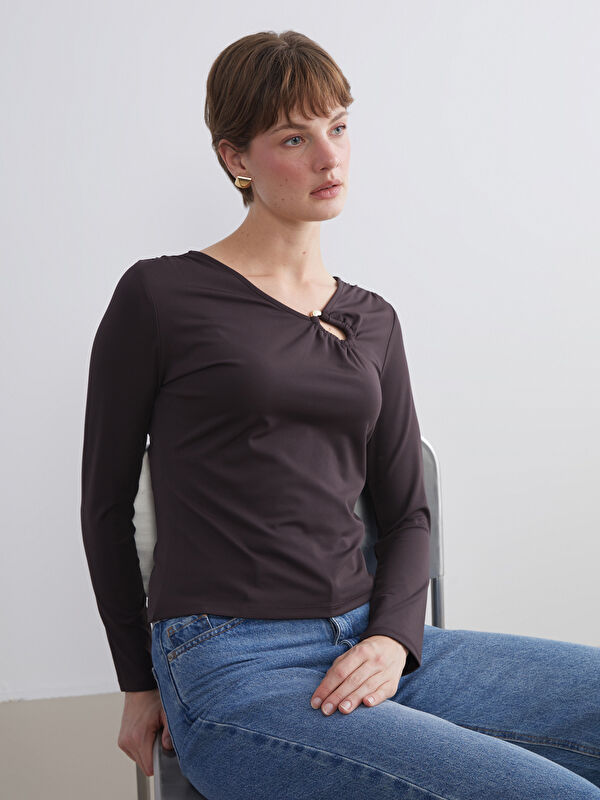 Дөңгелек жағалы өрнекті әйелдер блузкасы
