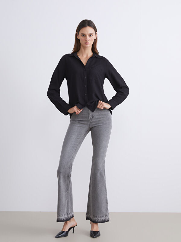 Әйелдерге арналған қысқартылған клеш джинс шалбар