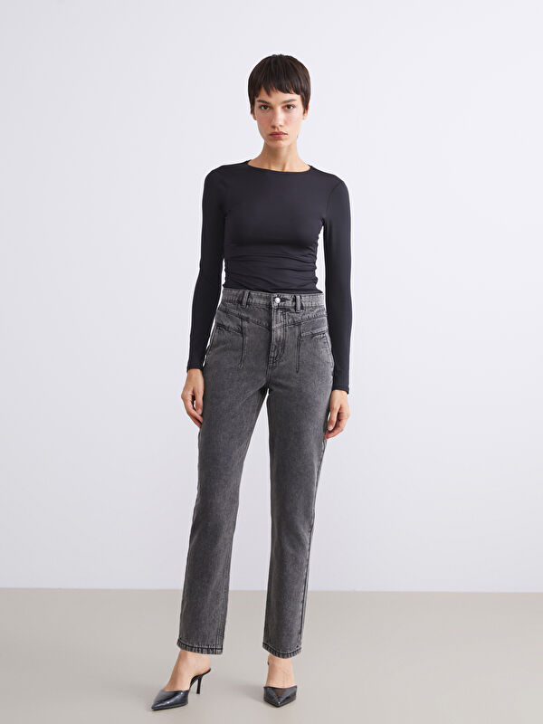 әйелдерге арналған бойфренд стиліндегі жыртылған детальды джинс шалбар