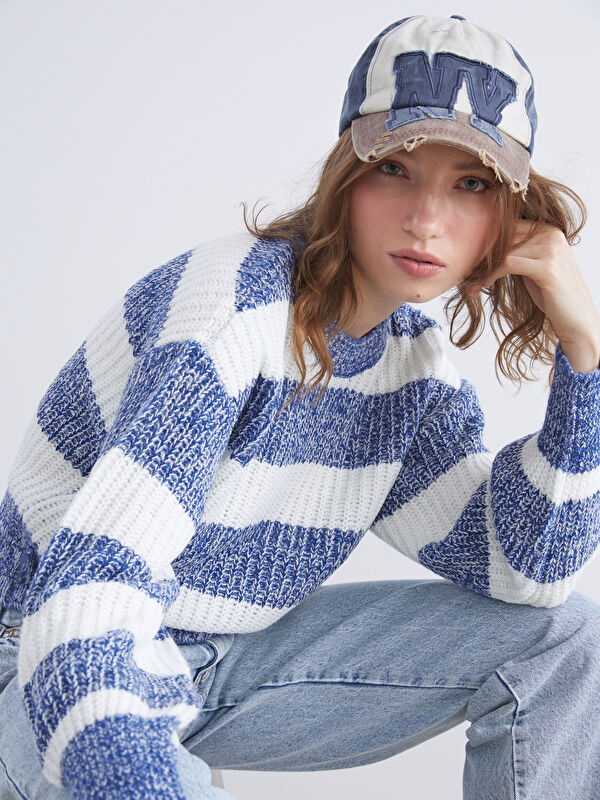 Дөңгелек жағалы кестеленген ұзын жеңді әйелдер трикотаж жемпірі