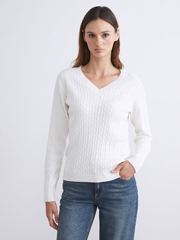 Тіке жағалы ұзын жеңді әйелдер тоқыма жемпірі