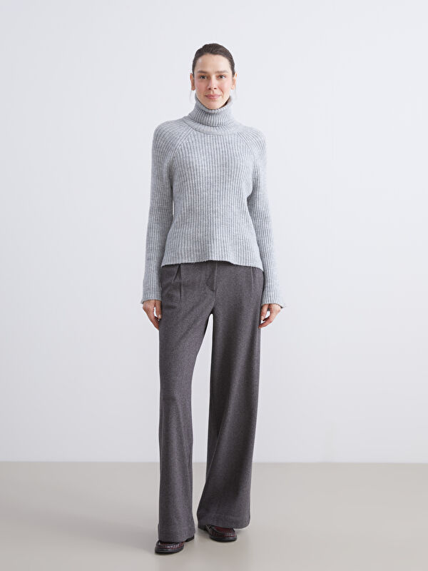 әйелдерге арналған серпімді белдік рельефті трикотаж кең балақ шалбар