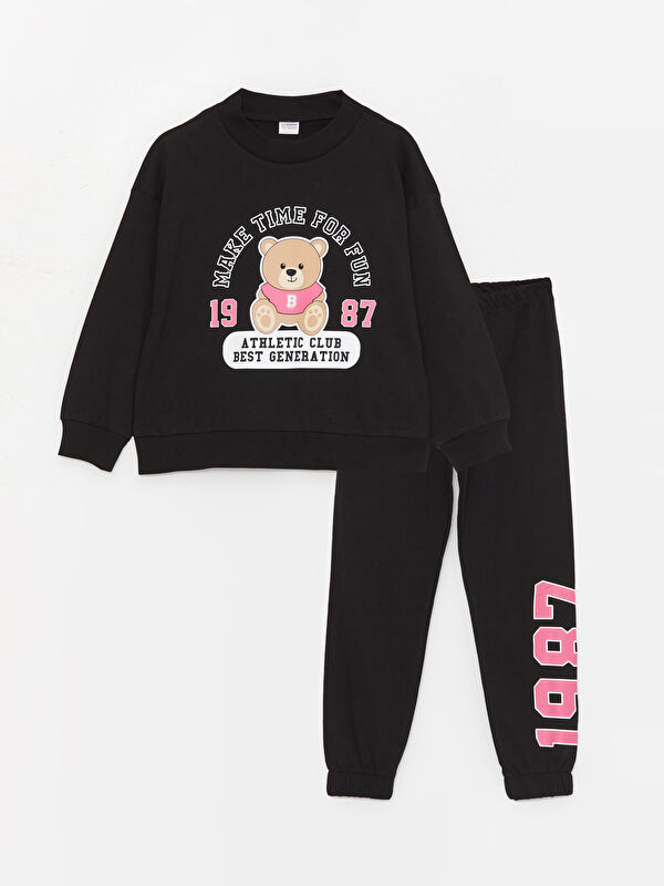 Дөңгелек жағалы басып шығарылған ұзын жеңді қыздарға арналған пижамалар жиынтығы