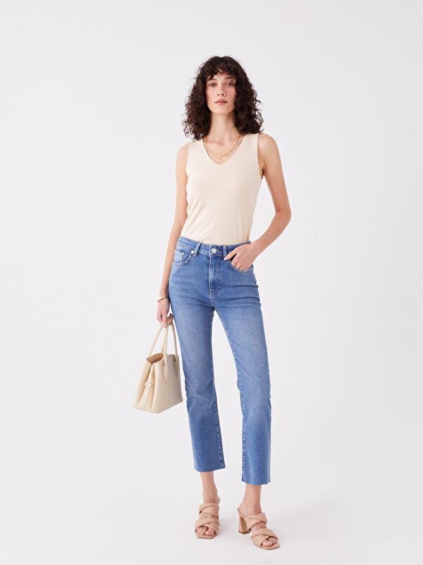 Жоғары белді жұқа Fit түзу қалталы детальды әйелдер Родео джинсы шалбары