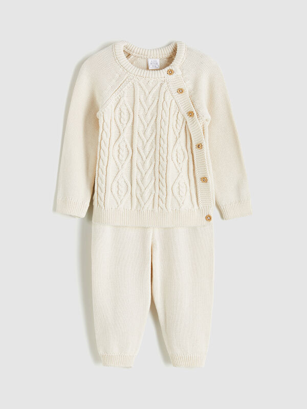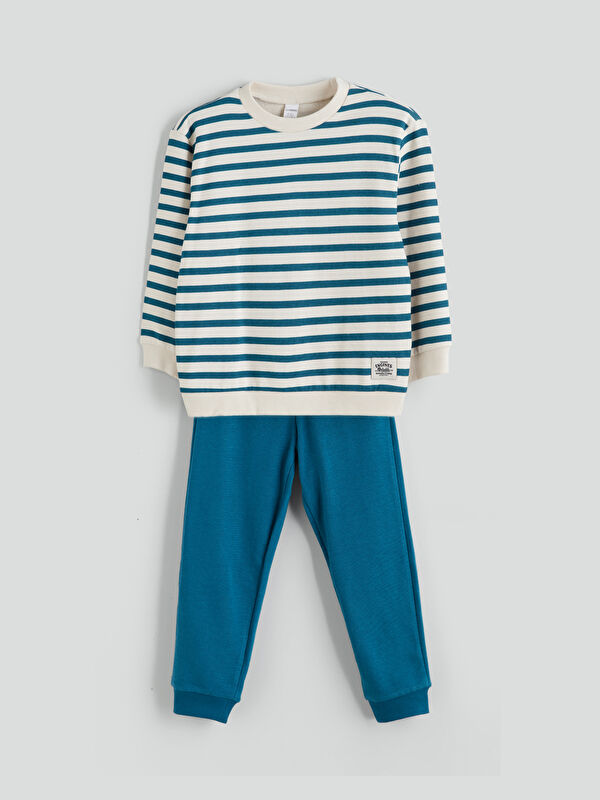 Дөңгелек жағалы ұзын жеңді Winnie the Pooh басып шығарылған ұл нәрестеге арналған жемпір және шалбар пакетте2-дана