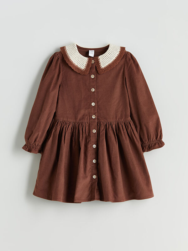 Қыздарға арналған дөңгелек жағалы бүріккен көйлек