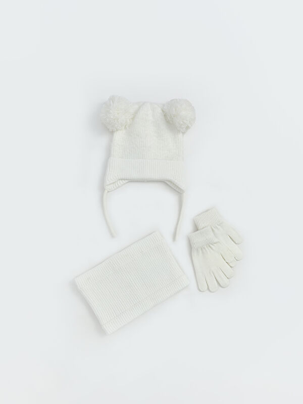 Комплект: Шарф, Шапка и Перчатки с Помпоном Для Девочек