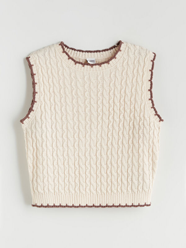 Кардиган из трикотажа с круглым вырезом и ажурной вязкой для девочек