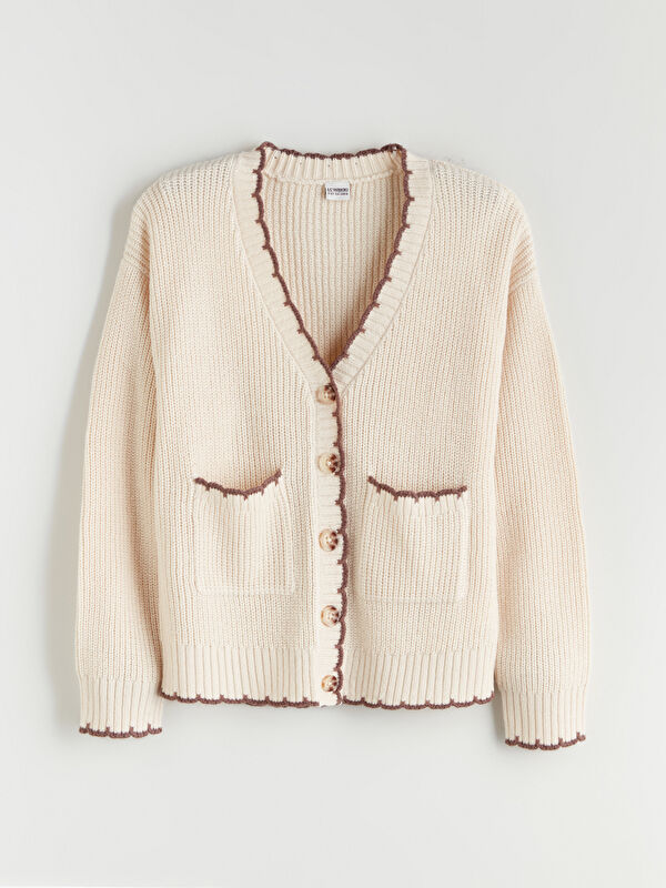 Кардиган для девочек с круглым вырезом и деталями кармана