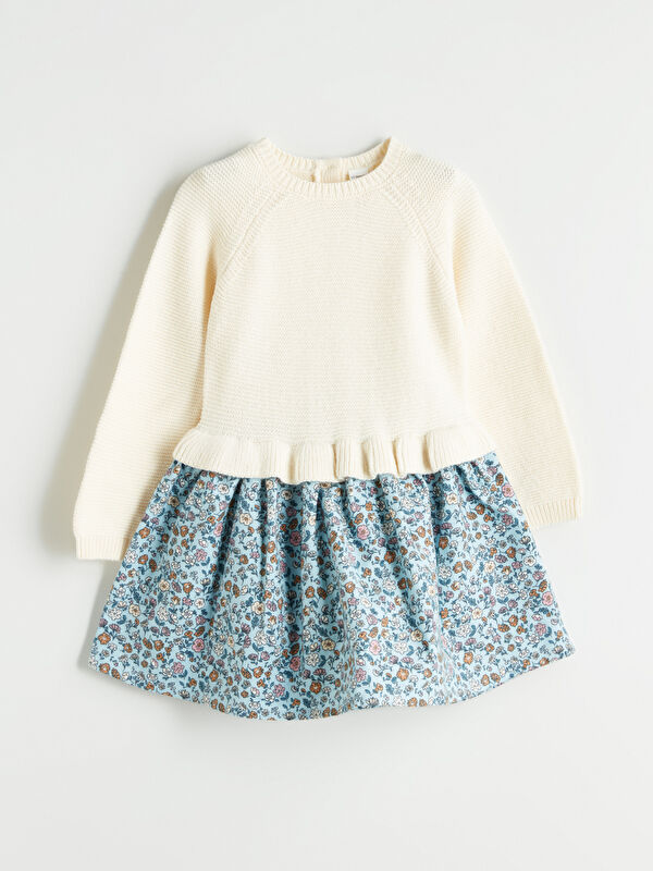 Платье с круглым вырезом и цветочным узором для девочек