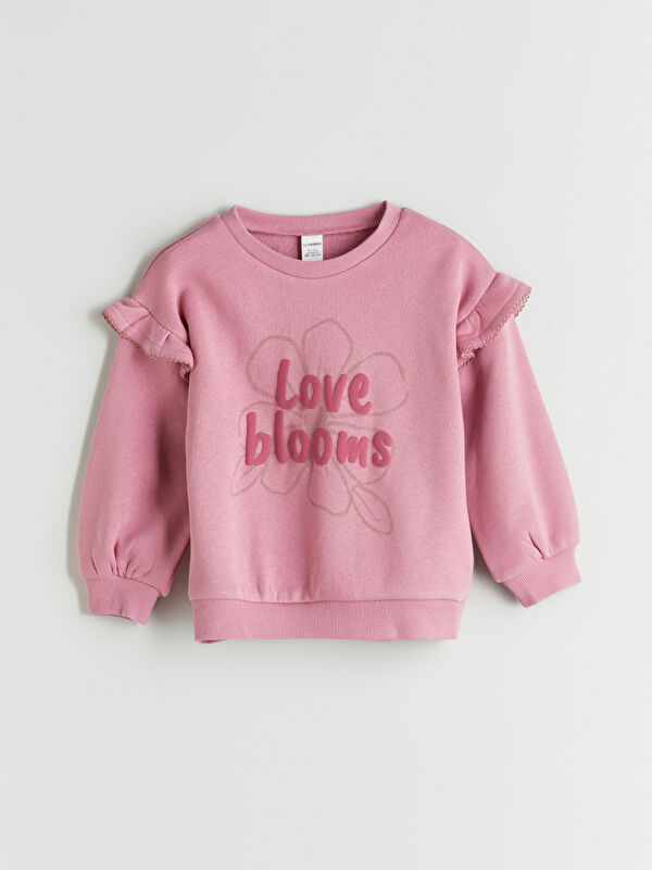 Свитшот с круглым вырезом и цветочным узором для девочек