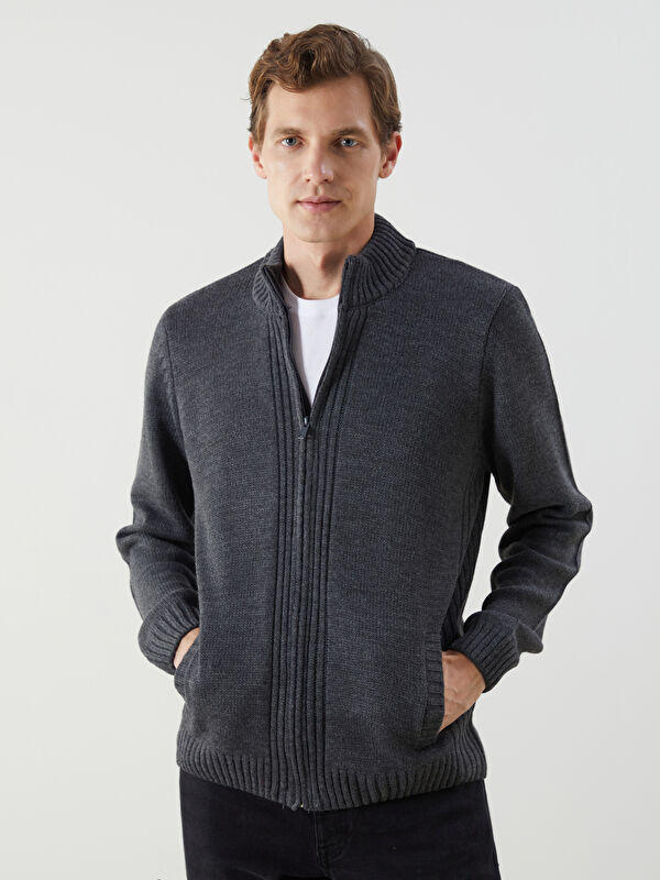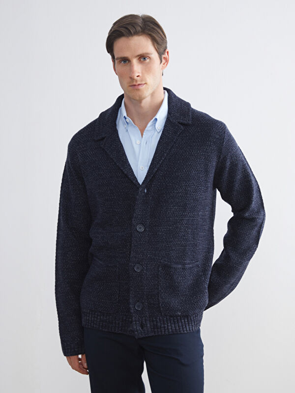 Кардиган из трикотажа стандартного кроя с воротником колледж для мужчин