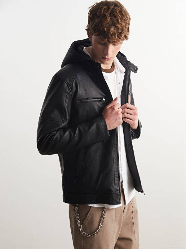 Пальто из искусственной кожи свободного кроя с отложным воротником для мужчин
