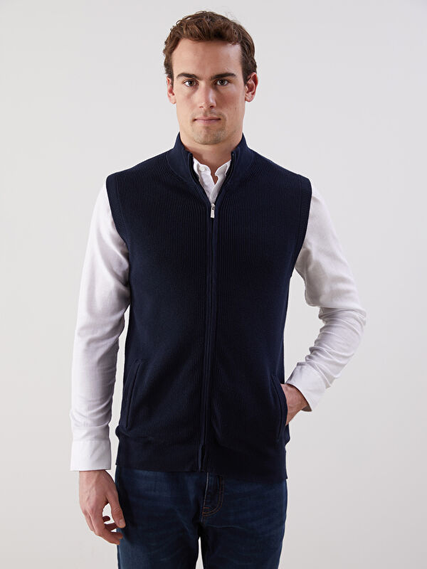 Жилет из трикотажа с воротником-труба стандартного кроя для мужчин