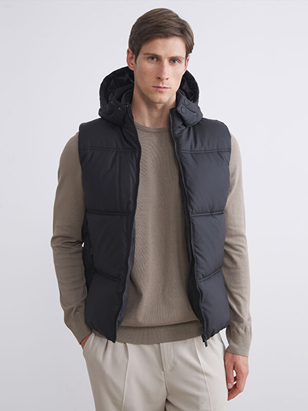 Жилет Мужской Дутый С Капюшоном Стандартного Кроя