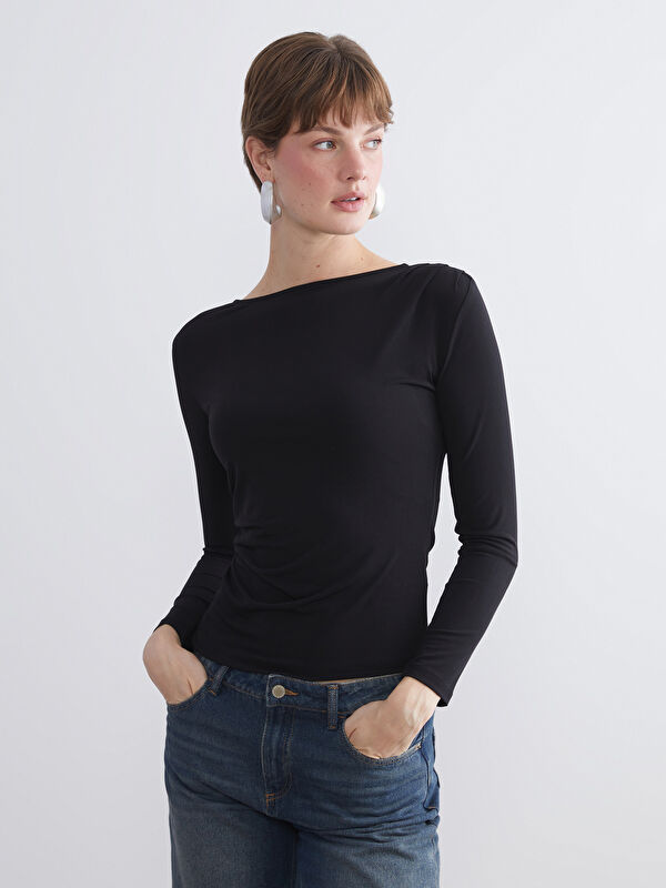 Блузка с вырезом с выемкой, однотонная, с длинным рукавом для женщин