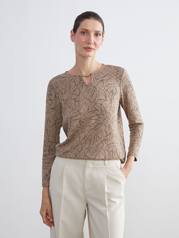 Блузка с круглым вырезом и узором для женщин