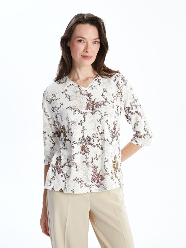 Блузка с V-образным вырезом и цветочным принтом для женщин