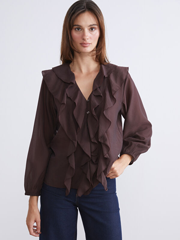Кружевная Блузка с Круглым Вырезом и Оборками