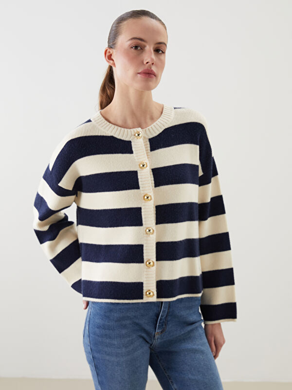 Кардиган из трикотажа с круглым вырезом и леопардовым принтом для женщин