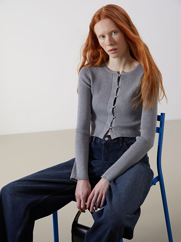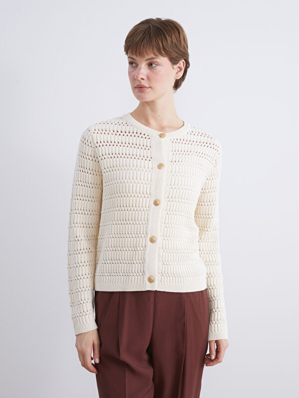 Кардиган из трикотажа с узором и круглым вырезом для женщин