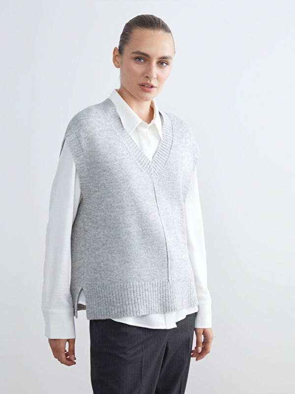 Жилет-свитер из трикотажного материала с круглым вырезом и ажурной вязкой для женщин