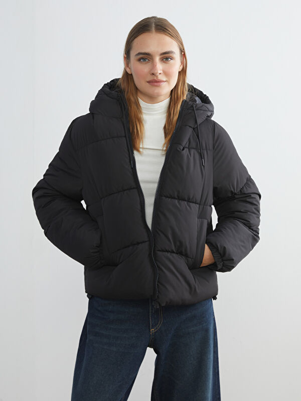 Пуховик с воротником-трубой и стёганым узором для женщин