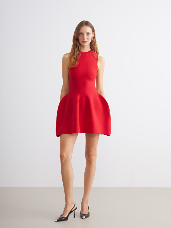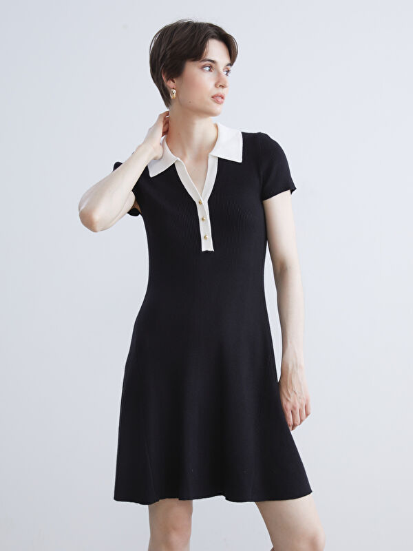 Платье из поплина А-силуэта с ажурной вязкой и круглым вырезом