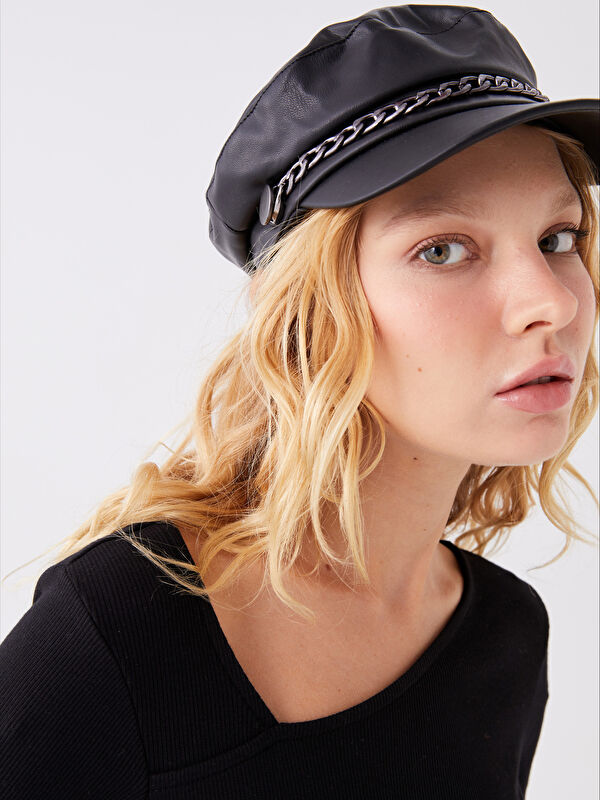Кожаная на вид капитанская фуражка с цепочкой для женщин