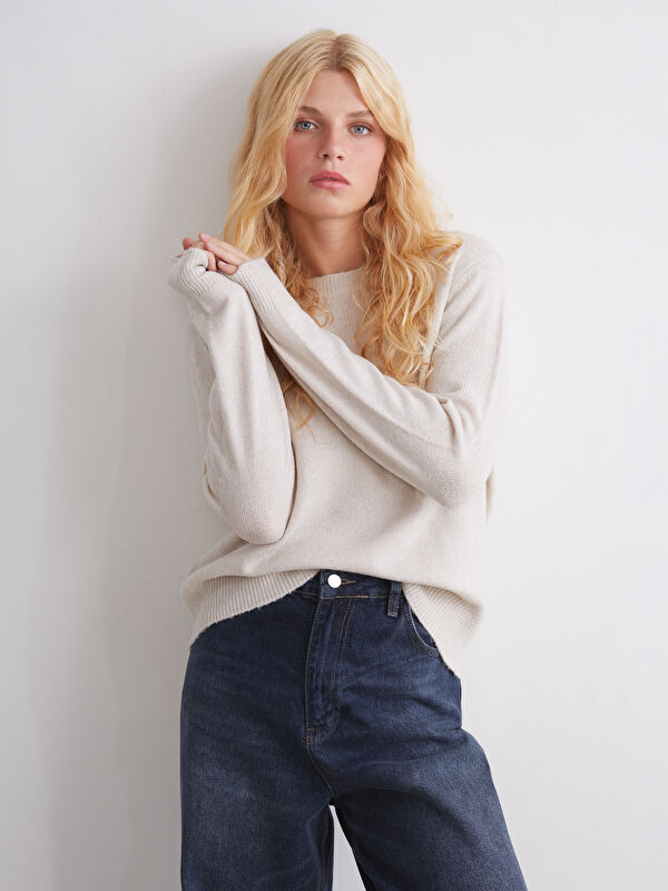 Свитер из трикотажа с круглым вырезом и узором для женщин